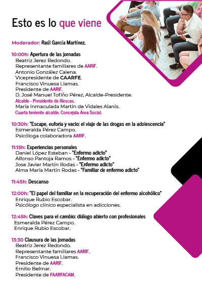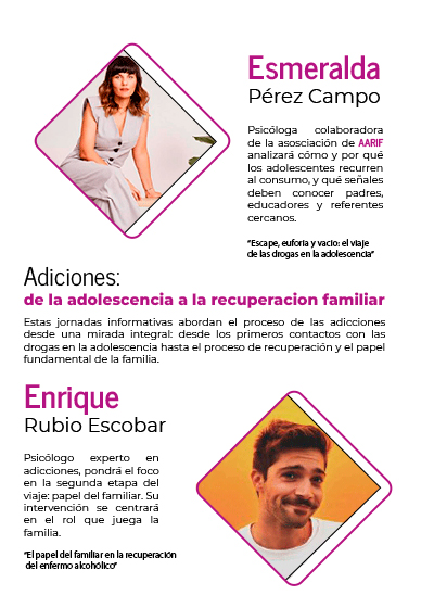 La Asociación AARIF organiza sus XXIII Jornadas Informativas, un evento dedicado a la formación y sensibilización sobre las adicciones desde una mirada integral: desde los primeros contactos con las drogas en la adolescencia hasta el proceso de recuperación y el papel fundamental de la familia. Este encuentro contará con ponencias de expertos y testimonios que permitirán comprender mejor el proceso adictivo y el rol de la familia en la recuperación.